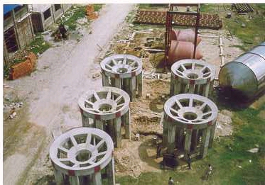 OVERALL VIEW OF FIVE FERMENTER"S FOUNDATIONS