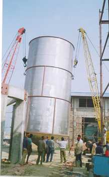 CLOSER VIEW OF DEPLOYMENT OF CRANES FOR LIFTING A THIN SS VESSEL